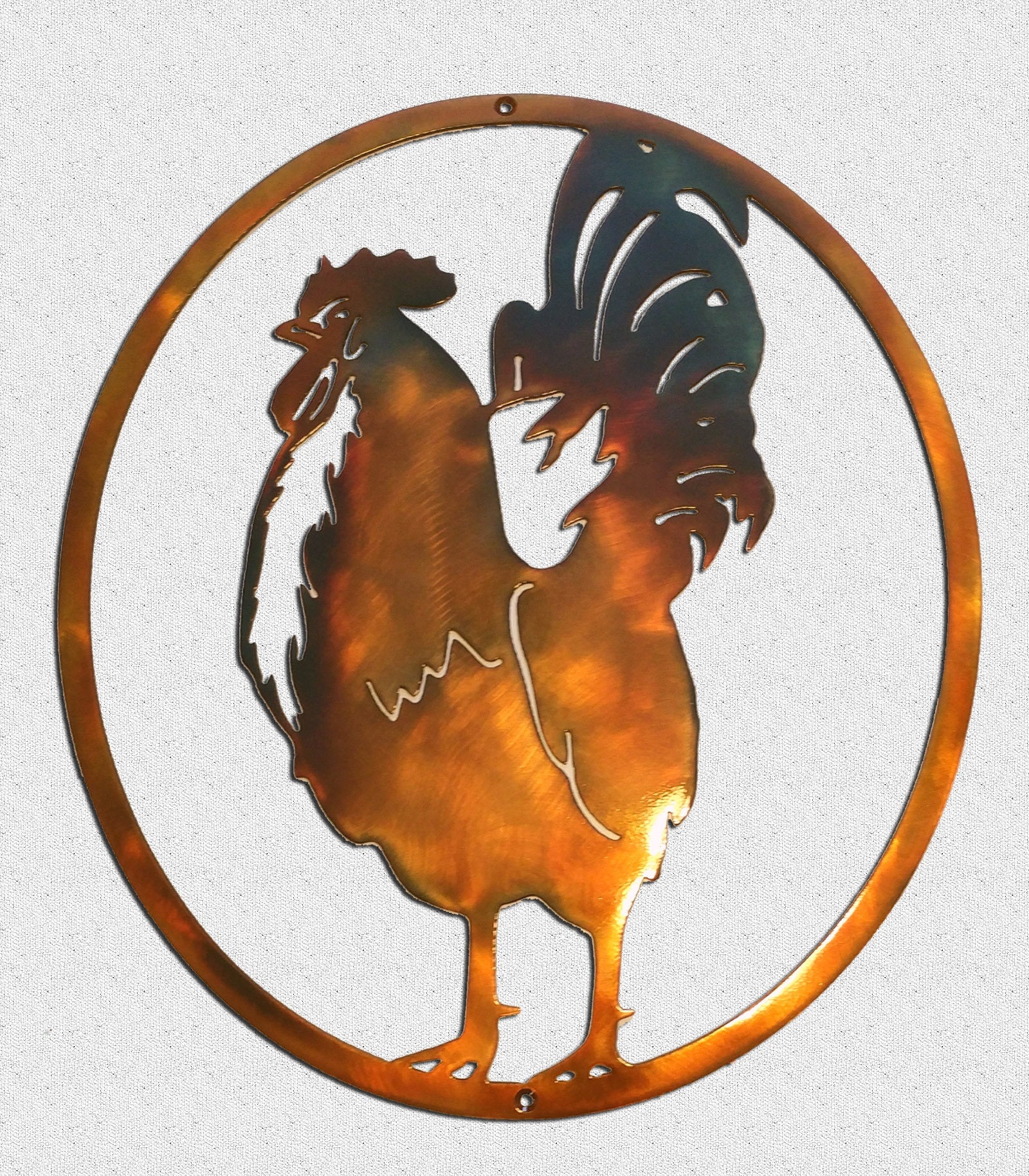 28" Rooster in Oval Indoor Or Outdoor Metal Wall Art