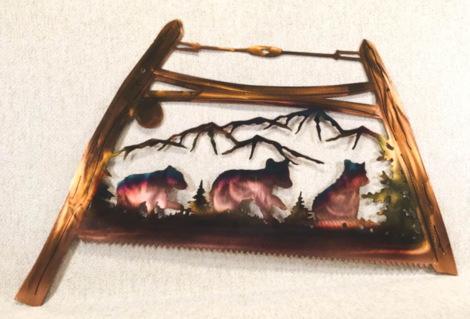 Bow Saw With Bear Cubs Indoor Or Outdoor Metal Wildlife Wall Art