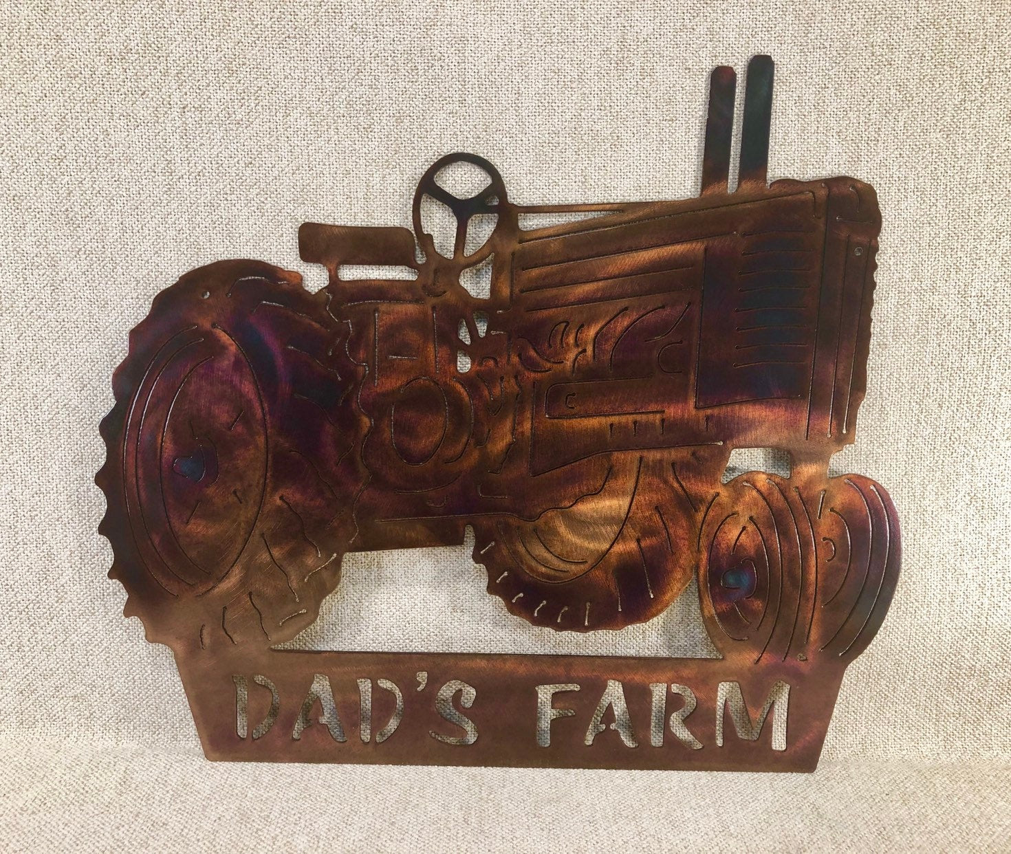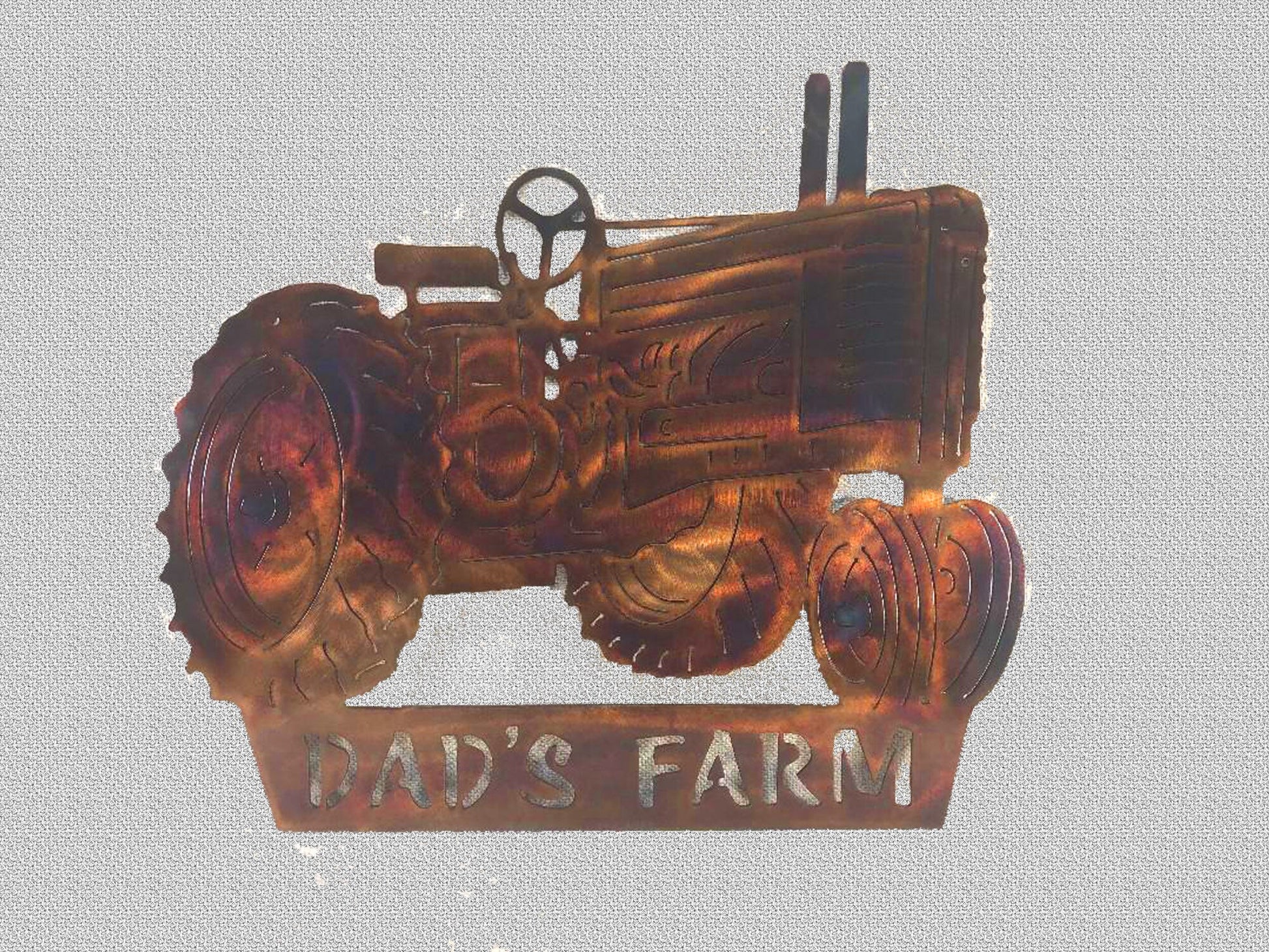 Dad's Farm Tractor Indoor or Outdoor Plasma Cut Metal Wall Art sign