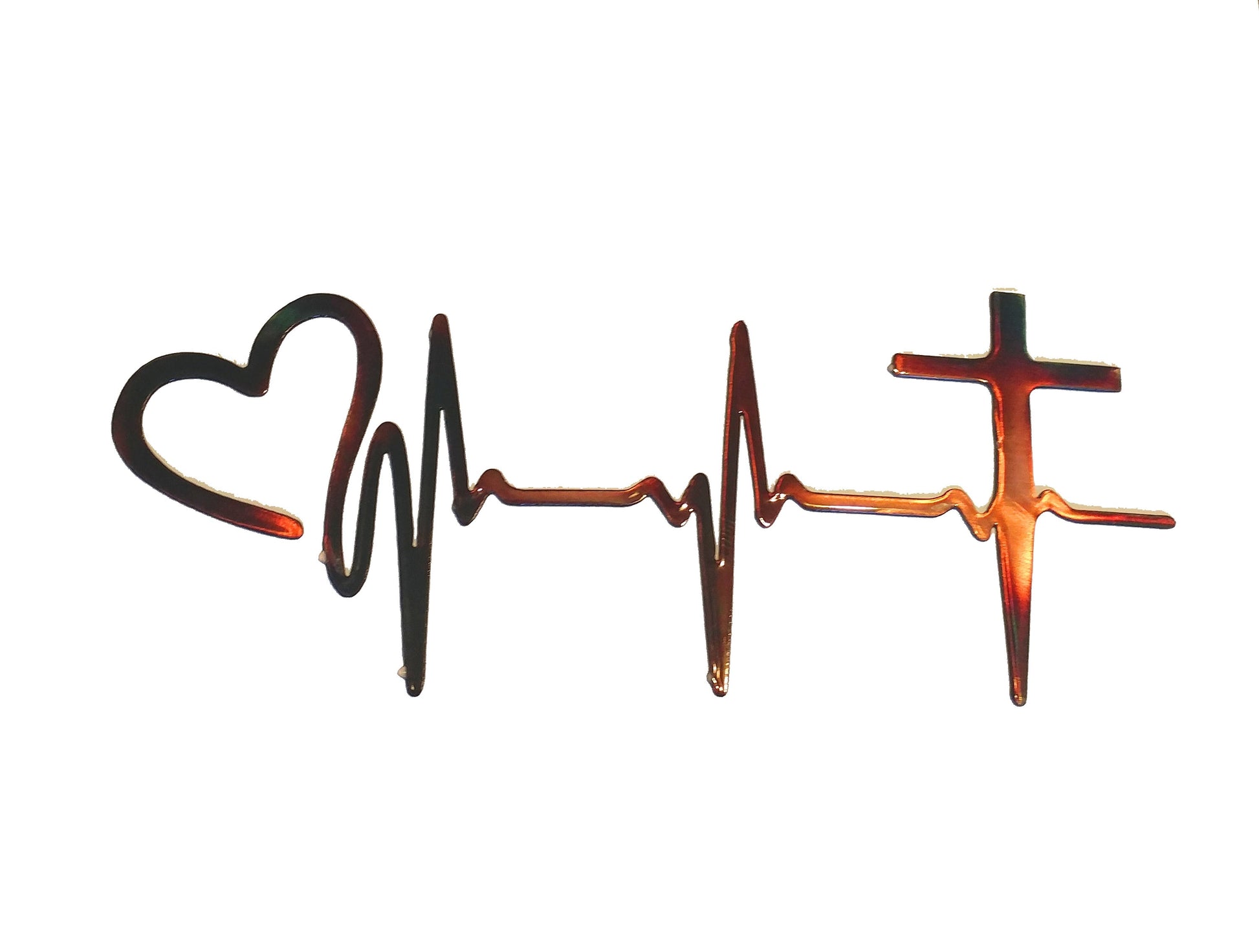 EKG Heartbeat Heart & Cross Plasma Cut Indoor or Outdoor Metal Art