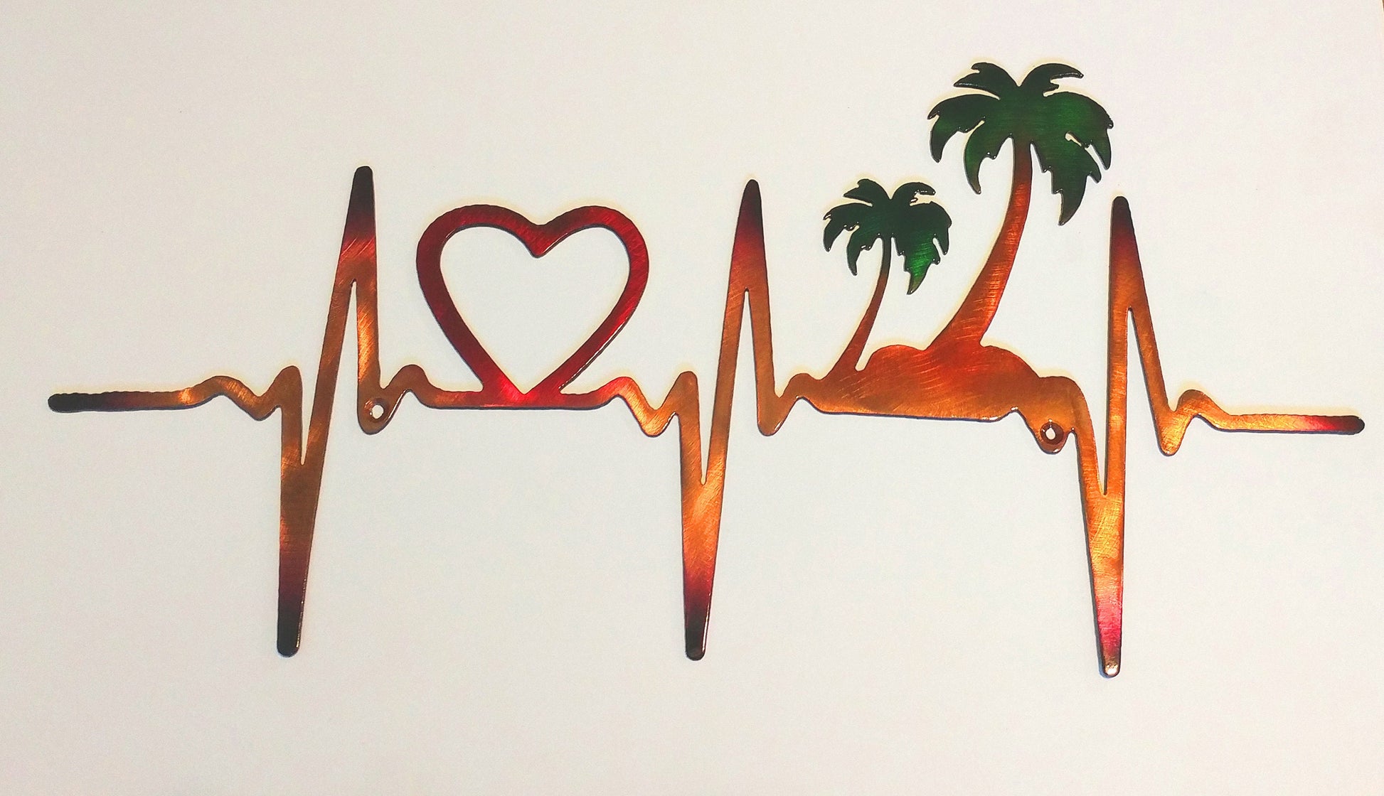 EKG Heartbeat Heart & Palm Trees Plasma Cut Indoor or Outdoor Metal Art