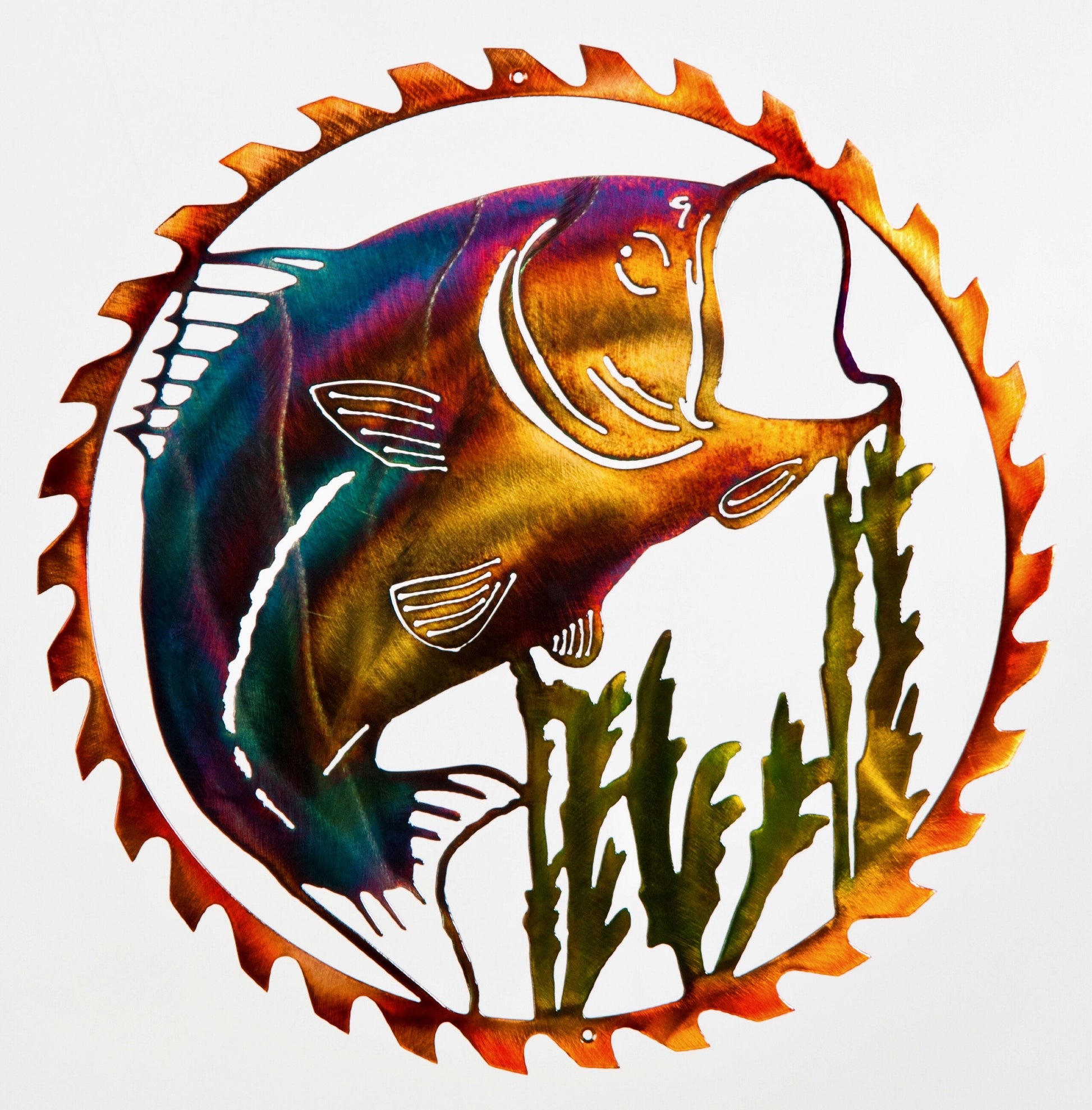 Large Mouth Bass In Sawblade Frame Metal Wall Art